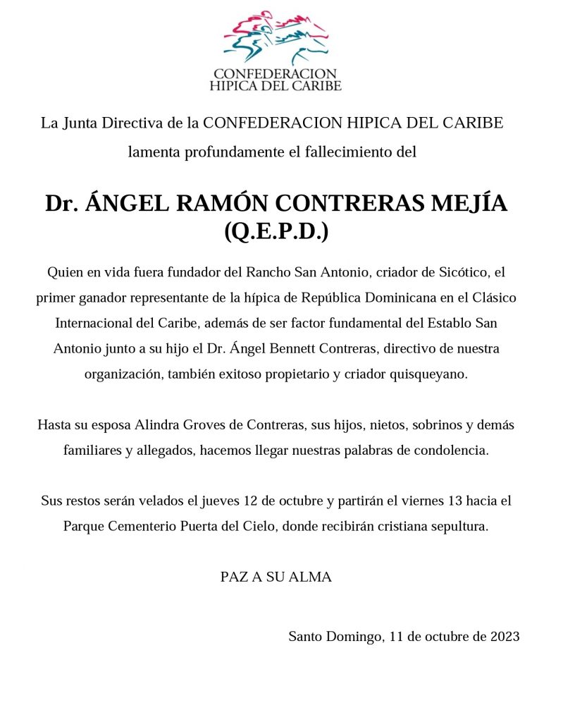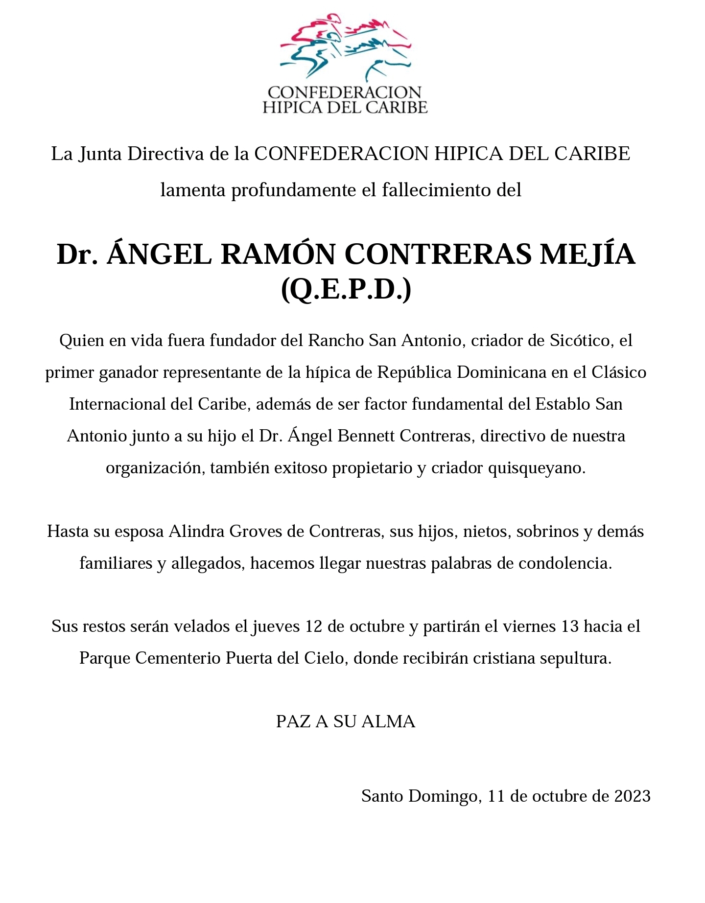 OBITUARIO – Dr. Ángel Ramón Contreras Mejía Posted on 12 octubre, 2023 por Juan Carlos Feijoo González
