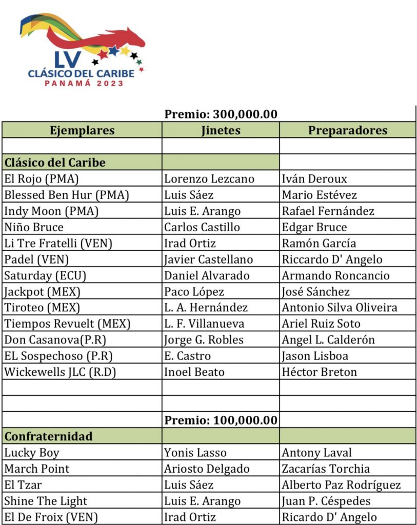 INSCRITOS PARA LAS SELECTIVAS DE LA SERIE HÍPICA DEL CARIBE 2023 Posted on 1 diciembre, 2023 por Juan Carlos Feijoo González